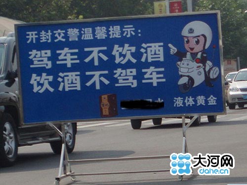酒广告登上开封醉驾警示牌 网友质疑不和谐(图)