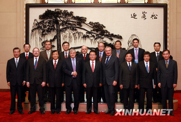 10月9日晚,中共中央政治局常委李长春在北京人民大会堂会见出席世界媒体峰会的部分国外媒体负责人。新华社记者 鞠鹏 摄