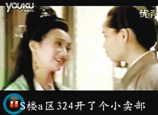 的名为“S楼宅女们的福音,是S楼的就分享”的视频,用的是《新白娘子传奇》的片段,唱的是《杜十娘》的调子,歌词是一则号称“s楼小卖部”开张的广告。