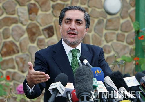 11月1日,阿富汗总统选举的两名候选人之一阿卜杜拉在喀布尔的官邸举行记者招待会。当天,阿卜杜拉宣布,由于选举公正性毫无保障,他将不参加定于7日举行的总统选举第二轮投票。新华社发(扎比摄)