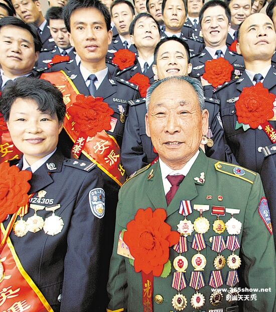 李老胸前别的勋章有20枚,其中分量最重的一枚是全国公安一级英模称号的勋章。