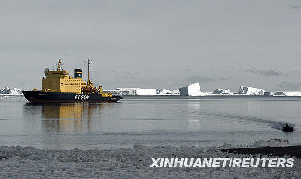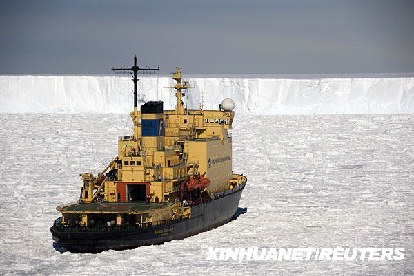 这张2009年11月16日公布的照片显示,俄罗斯“赫列布尼科夫船长号”破冰船被困南极海域。阿根廷海军16日发表公报说,俄罗斯“赫列布尼科夫船长号”破冰船在距离南极约2800公里的海域遭遇恶劣天气,只能离开原定航道躲避。船上有88名船员和105名乘客,包括一批到南极进行科学考察的科学家,以及英国广播公司拍摄纪录片《冰冻星球》的摄制组人员。新华社/路透