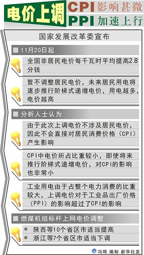 图表:电价上调:CPI影响甚微 PPI加速上行 新华社发
