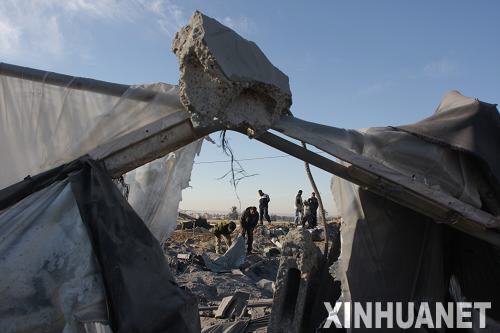 11月22日,几名巴勒斯坦人在加沙地带遭轰炸的废墟上查看。以色列战机22日对加沙地带多个地点发动空袭,造成至少10名巴勒斯坦人受伤。新华社/法新