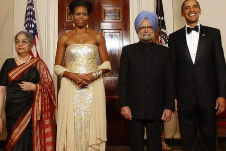 美国总统奥巴马前晚在白宫设国宴,欢迎到访的印度总理辛格,并于24日举行首脑会谈。香港《文汇报》称,为平息印度对美国给予中国和巴基斯坦“太多关注”而产生的“妒火”,白宫以高规格接待辛格。