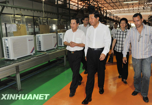 贾庆林视察了格力公司空调生产车间和产品展厅,详细询问了解了生产销售及驻巴西中资机构运营情况。在听取企业代表发言后,贾庆林代表党中央、国务院向在巴西辛勤创业的中资企业员工表示亲切的问候和良好的祝愿,对他们取得的成绩表示祝贺。