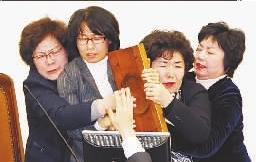 韩国数十名女议员在国会打架 场面激烈