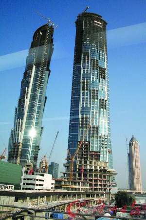 迪拜Burj Dubai区的停工建筑随处可见。