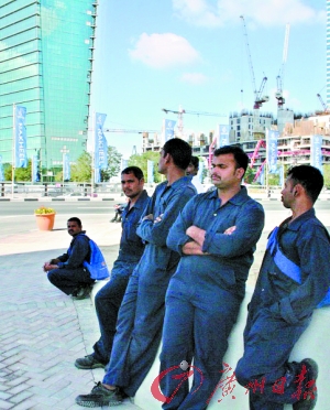 迪拜街头的房地产劳工无事可做。