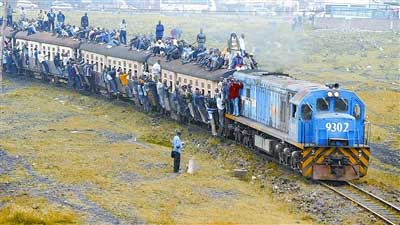 1月5日,在肯尼亚首都内罗毕,人们搭乘一列超载的火车。如此的拥挤场面,在印度只是“家常便饭”,据悉,印度铁路系统落后,而该国每年运送乘客达62多亿人次。高运量、低维护、常超载也使得印度火车事故率高发。