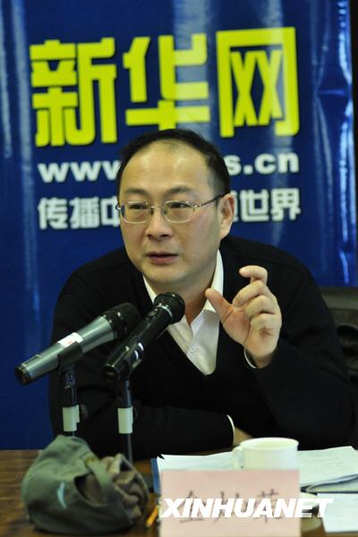 金灿荣(中)与出席新华网“纵论天下”研讨会的学者、专家交流。 新华网 陈竞超 摄