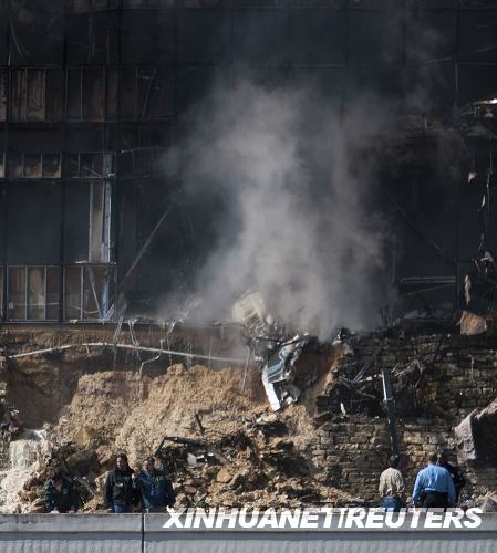 这是2月18日在美国得克萨斯州奥斯汀市拍摄的飞机撞楼后的场景。据警方称,这架小飞机当天在奥斯汀市撞向一栋七层高的楼房。目前已有两人受伤入院。新华社/路透
