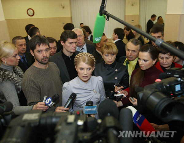 2月20日,在乌克兰首都基辅,乌克兰总统候选人之一、现任总理季莫申科宣布撤诉后离开法院。季莫申科当天说,由于法院拒绝提取书面证据和听取证人证言,只是进行形式上的审理,她认为继续审理该案已经失去意义,因此决定撤回对亚努科维奇阵营“选举舞弊”的起诉。乌最高行政法院随后宣布允许季莫申科撤诉,并决定终止对该案件的审理。这间接确认了亚努科维奇当选乌克兰总统的合法性。新华社发(普罗科片科摄)