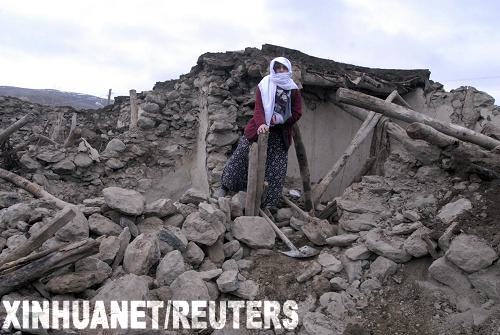 3月8日,在土耳其东部埃拉泽省,一名妇女站在地震废墟上。新华社/路透