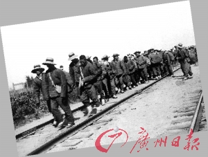 当年一群赶赴工地修建铁路的华工。