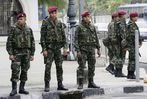 泰国士兵在政府大楼四周驻守