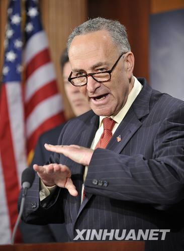 3月16日,在美国首都华盛顿国会山举行的记者会上,美国国会参议员查尔斯·舒默就人民币汇率讲话。在美国即将举行中期选举之际,美国国会部分议员近日不断炒作人民币汇率问题,试图迫使美国政府将中国界定为所谓的“汇率操纵国”。 新华社记者张军摄