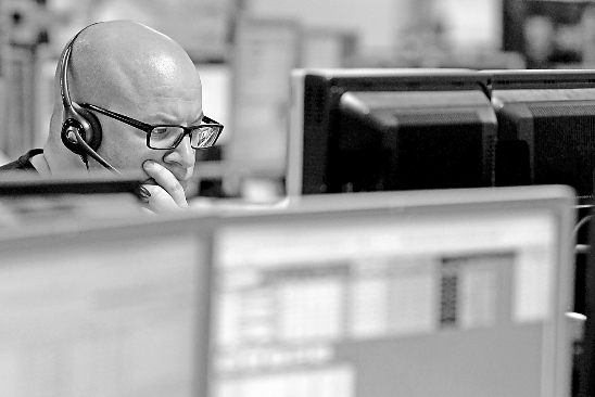 伦敦一家金融公司内,一名交易员查看交易信息。 新华社发