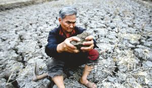 记者眼前的情景让人震撼:一块块农田里,干裂的土张着5~10厘米不等的大口子,密密麻麻地,满目皆是。许庭书挥舞着锄头,看似锋利的锄头落在田间,犹如挖在海绵上,软绵绵地,根本就不往土里去。