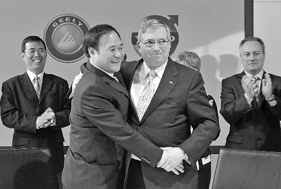 当新浪视频直播的镜头定格在吉利控股董事长李书福和福特汽车公司首席财务官莱维斯·布思拥抱的那一瞬间,我们清楚地看到镜头下的李书福,那一刻,他笑得很灿烂,当然那一刻,他也等得很辛苦。3年等待、谈判、磨合,这桩中国民营企业最大的海外汽车收购案尘埃落定,创下中国收购海外整车资产的最高金额纪录。李书福终于以胜利者的姿态站在国际汽车业舞台上。
