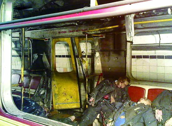 躺在爆炸地铁车厢内的受害者。人民图片供图