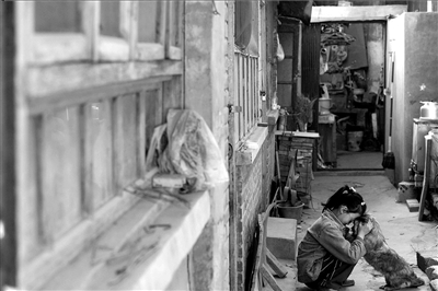 翠花胡同31号院,一个女孩与她的小狗。在事关这院子的一场官司中,房东和租户均承受着折磨。本报记者张沫摄