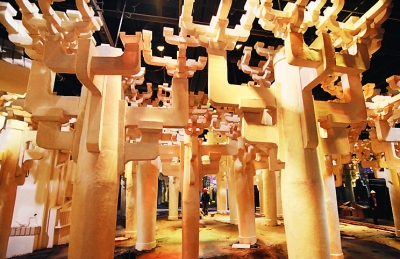 如果说在这之前处于布展中的中国馆还能跟着施工方“溜”进去一探究竟的话,那么从8日开始,世博园里的“东方之冠”将陆续进入布展的最后冲刺阶段。而到10日,中国馆连同地区馆将对一切探视说不。
