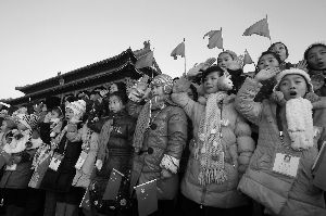 新年到广场看升旗,永远都让人激动,但今年有了一个更“震撼”的欣赏角度——天安门观礼台首次向普通游客开放。昨日清晨7点36分,新年第一天的升旗仪式伴随着清晨第一缕阳光开始,约5000名来自全国各地的游客在观礼台上,纷纷唱起国歌迎接新年(如图)。