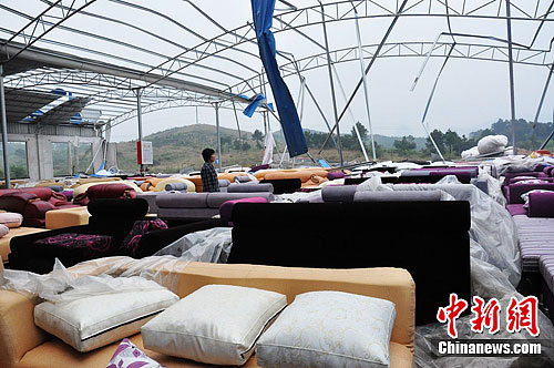 大风给当地企业也造成严重影响。面积200多亩的连州市城西家具城内的23家企业,在此次风灾中无一幸免,都遭受到不同程度破坏。据城西家私协会会长梁土生介绍,初步估算,这场近两小时的大风对该家私城造成的损失超3000多万元。
