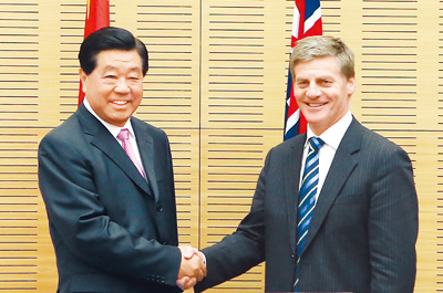 全国政协主席贾庆林当地时间16日在惠灵顿与新西兰代总理英格利希举行会谈。
