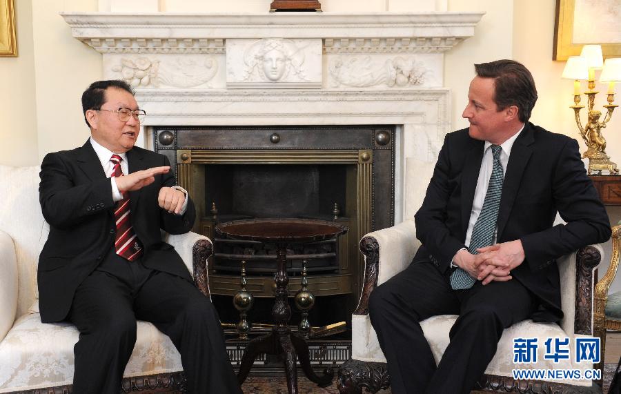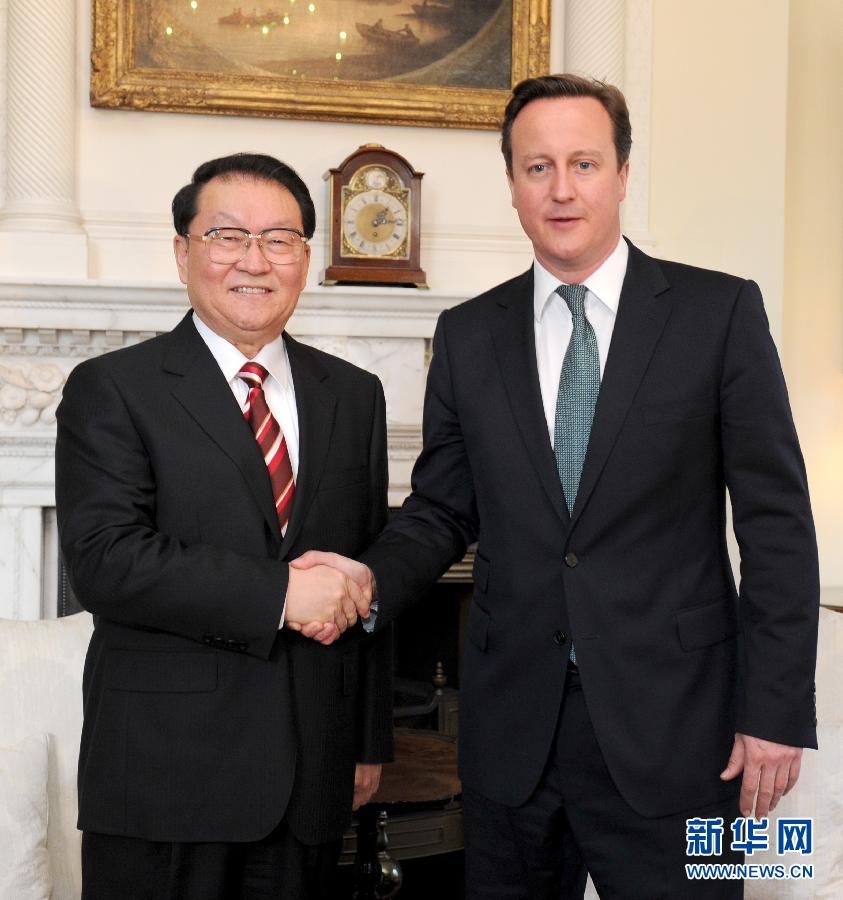 4月17日,正在英国进行正式友好访问的中共中央政治局常委李长春在唐宁街10号会见英国首相卡梅伦。 新华社记者马占成摄