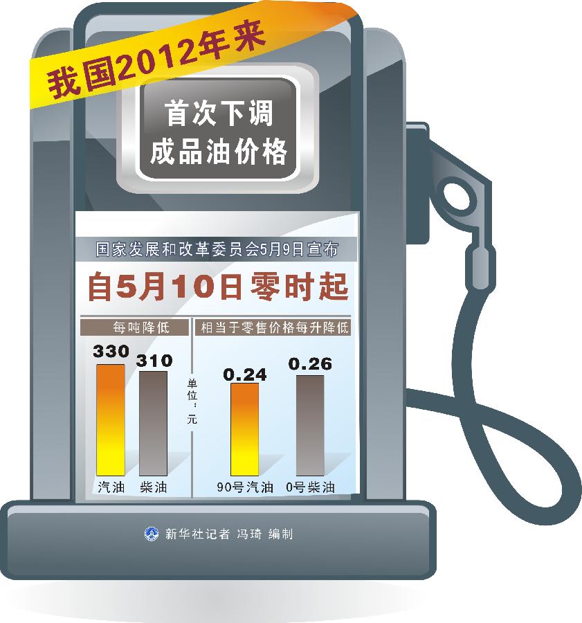 图表:我国2012年来首次下调成品油价格 新华社记者 冯琦 编制