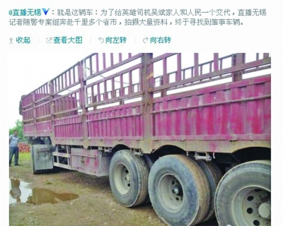 昨日,无锡警方通报了该案的最新调查进展后,即有消息在微博上传出,大意是无锡警方将把“闯祸”大货车和司机带回无锡进行进一步调查,一些实名认证的个人和官方微博也随即转发,引起广泛关注和议论。对此,无锡警方明确表示,这类消息子虚乌有,都未向无锡警方确认过。目前,“5·29”事故被定性为一起交通意外,“闯祸”大货车和司机不是该案的犯罪嫌疑人,按照法律规定,警方肯定不会将司机和大货车带回无锡进行调查的。