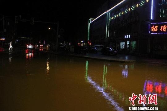 6月13日18时许,甘肃西部的玉门市境内再降暴雨。13日22时,记者在玉门市区看到,许多地段道路积水量较大,飞驰而过的汽车溅起1米多高的水花,街上行人渐少。
