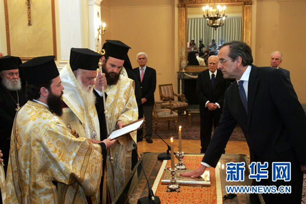 新华网雅典6月20日电(记者陈占杰刘咏秋)希腊新民主党领导人萨马拉斯20日下午宣誓就任新政府总理。在此之前,新民主党与泛希腊社会主义运动(泛希社运)和民主左派党领导人就组建联合政府达成原则协议。