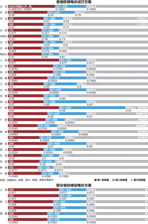 上海、福建、浙江、甘肃等省份在实行阶梯电价的同时,推出峰、谷电价方案,供居民选择。