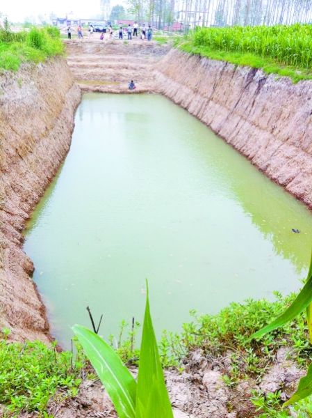 “两年前,这里还是稻田。”据当地村民介绍,“在俺们这儿,因紧挨着集镇,土地格外金贵。”村民指着大坑的西侧说:“那个地方,是村里正在建的房子,因地势低洼,要取土垫一垫。都是为了取土,才把稻田挖成了大坑。”