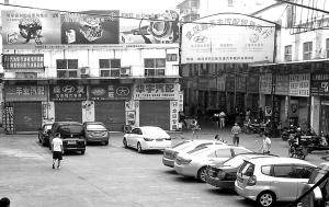 昨天上午11点,记者来到万源汽配城,位于沿河大道的十多家临街店铺全都拉着卷帘门。