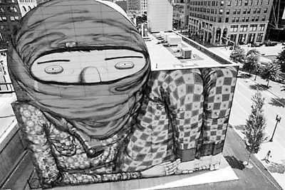 美化城市只是这些角落的初级任务,增加城市活力也靠它。美国波士顿的公园里出现了一幅长21米,宽21米的巨型壁画,描绘了一位衣着鲜艳、面部被红色围巾遮住只露出双眼的人半躺在地上,巨大的尺寸和画面冲击力让路过的人们纷纷驻足。波士顿博物馆馆长表示,这件艺术品可以为路过的人们增添快乐,画作庞大且充满活力,不仅能给城市带来新能量,同时也展示了作者丰富的创造力。