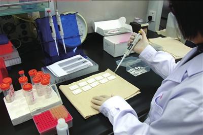 中国疾控中心性病艾滋病防控中心内,工作人员正在通过HIV快速检测设备做检测。记者王海欣摄