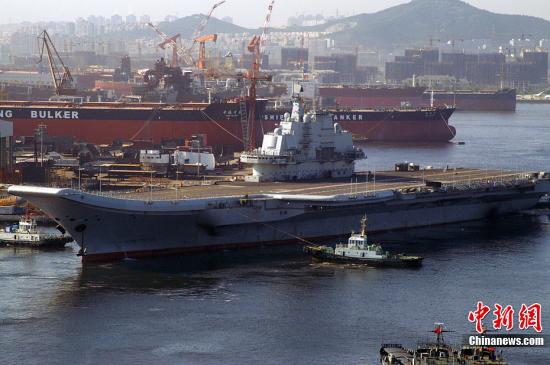 8月27日,中国航母平台在经过近1个月的休整之后,开始第十次海试征程。中新社发宋太盛摄