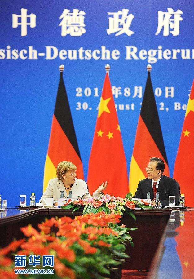 8月30日,中国国务院总理温家宝在北京人民大会堂与德国总理默克尔举行会谈,并共同主持第二轮中德政府磋商。新华社记者李涛摄