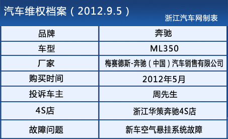 据周先生介绍,他是嘉兴人,5月份的时候,他打算购买一辆奔驰ML350的车子,由于杭州这边价格相对较合适,趁5月20日来杭州出差,便在石祥路的奔驰4S店购买了一辆白色的奔驰ML350SUV。