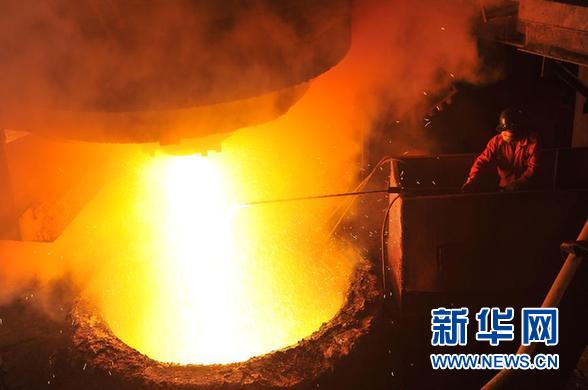 资料图片:8月27日,东北特钢集团大连高合金线材公司冶炼作业区的一名工人打开电炉钢水出水口。 新华社发(刘德斌 摄)