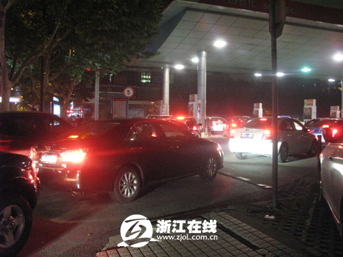 在通知下发前,油价上调的消息在网上就传开了,杭州不少车主提前两三天就去加油。今天,记者来到建国北路的一家加油站,等待加油的车主吴小姐笑着说:“看到新闻里说会涨价,我今天下班就过来加油了,加油站里居然有不少车主跟我一样,加油还要排队。”吴小姐给记者算了一笔账,每升涨三四毛钱,提前加油能省十几块钱。