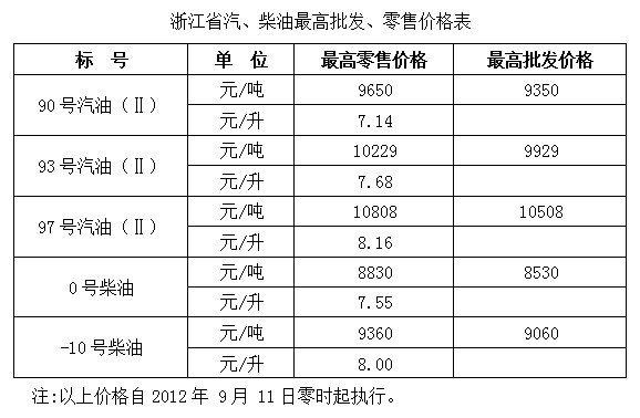 根据通知要求,93号汽油最高零售价格调整为7.68元/升,此价格自2012年9月11日零时起执行。