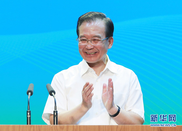 9月14日,中共中央政治局常委、国务院总理温家宝应邀到清华大学看望师生,并在学校大礼堂发表演讲。 新华社记者鞠鹏摄