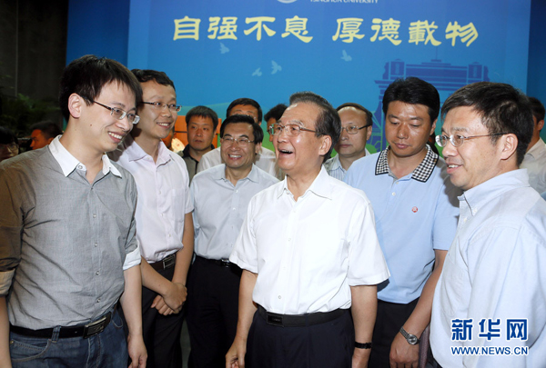下午2时30分许,温家宝首先来到有着80年历史的机械工程学院精密仪器系。在IC装备重大专项实验室,温家宝听取了集成电路最核心装备光刻机研制和市场推广介绍。在制造系统实验室,他了解了微小卫星技术进展和学生实习、学校与企业合办研究中心的情况。他说,学生要培养创新性思维,科研人员要掌握核心技术,才能不断增强创新的能力。