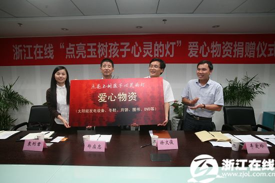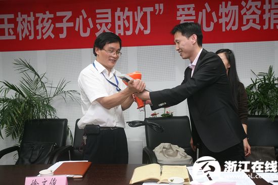 在捐赠仪式上,连续两年多次前往玉树实地采访的记者徐晓向大家汇报了当地无电村小的现状和去年玉树点灯活动的成果。对记者徐晓的介绍,连续两年参与“玉树点灯”活动的萧山供电局纪委书记、工会主席郑应忠感慨颇深:“去年我们在得知浙江在线发起这个活动后就第一时间参与了进来,当时我们发动了全局两千五百多名员工捐款,筹得善款十余万。当时我自己带队和浙江在线记者一起去玉树,亲手为玉树县上拉秀乡的曲新村小点亮了第一盏灯,我们在后方的员工都非常关注这件事,我们第一时间把亮灯的照片传回杭州,员工们看了都欢欣鼓舞。”今年再度参与“玉树点灯”,萧山供电局前期就做了不少准备,还专程为玉树举行了筹款义卖,“我们通过在内部拍卖员工的书法作品等,为玉树无电小学筹集善款。”如此用心,令人感动。