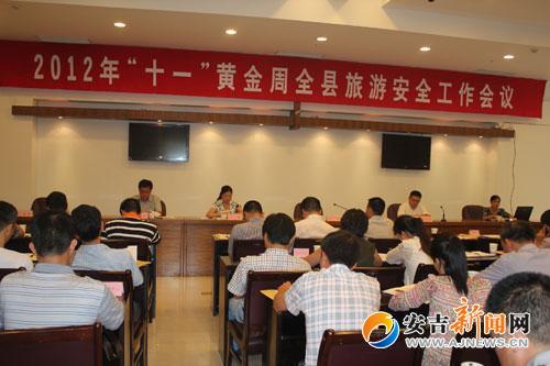 今天下午,我县召开“十一”黄金周旅游安全工作会议。县领导王树、任烽参加会议。县委副书记、县长王树在会上强调,全县上下要深化认识强化责任、明确重点强化落实,领导带头强化作风,切实履行“服务无休日,监管常态化”工作新机制,确保长假期间全县旅游安全稳定,各项工作平稳有序。图为会议现场。